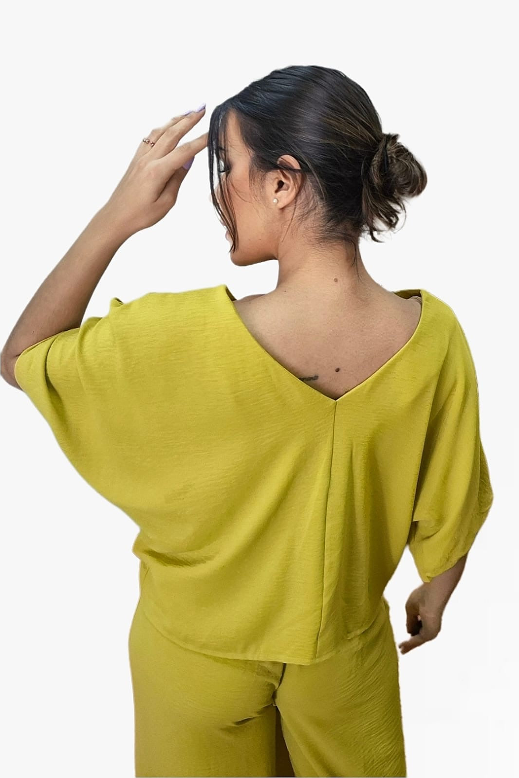 Ligera, suave y con una caída espectacular. Esta camisa de escote en pico y manga amplia es la prenda ideal para un estilo cómodo y sofisticado. Su diseño minimalista permite múltiples combinaciones, pero si buscas un conjunto de impacto, combínala con el pantalón pareo con botón en el mismo tono. ¡Parece un mono y sienta de maravilla!