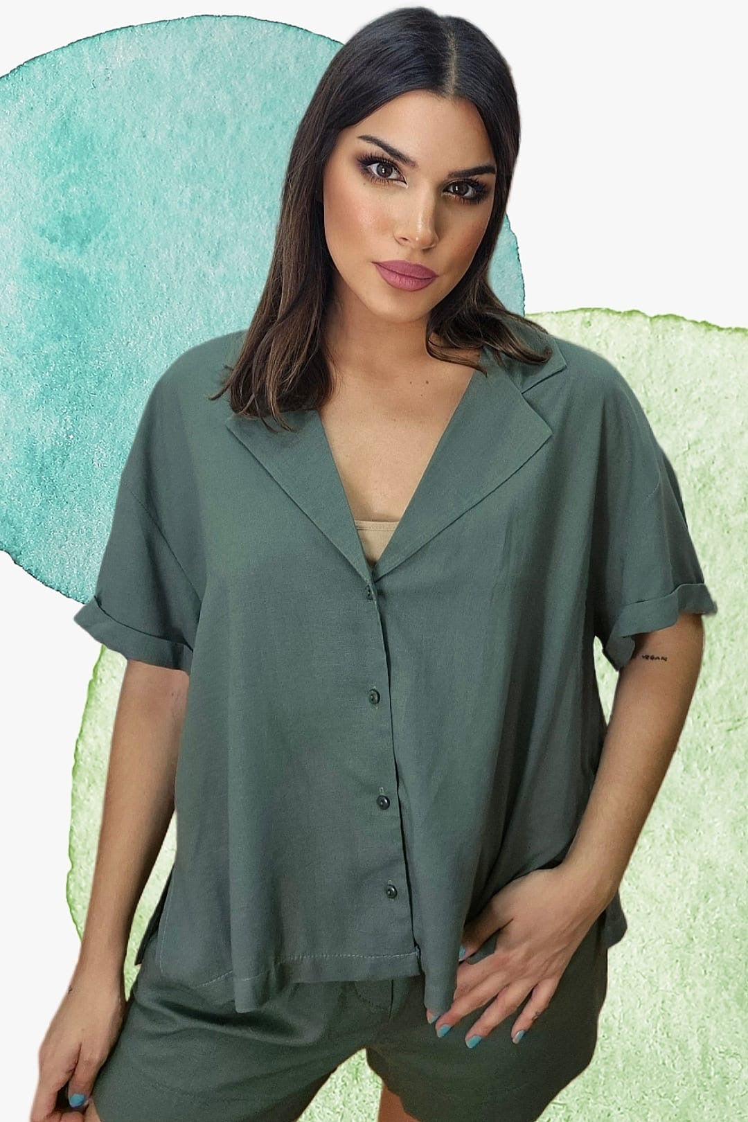 Camisa oversize abotonada Verde