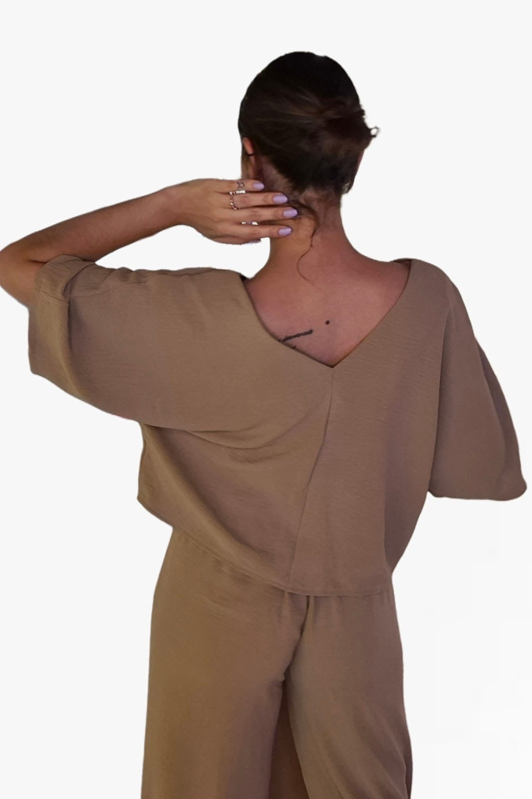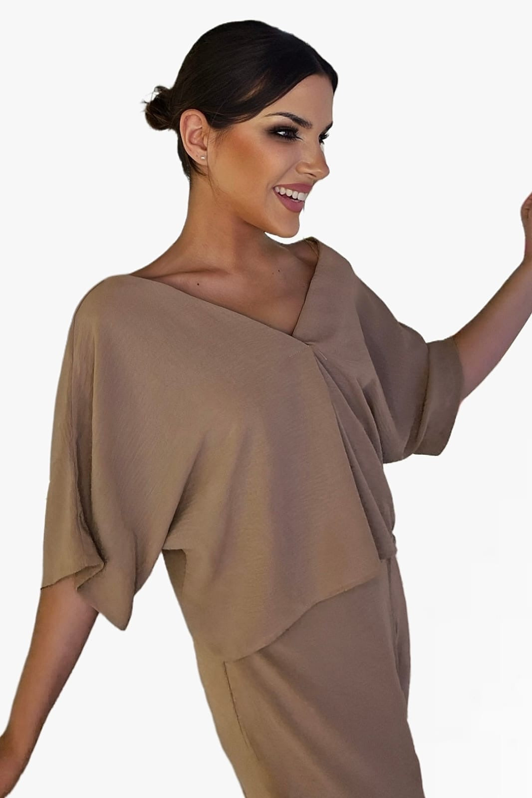 Ligera, suave y con una caída espectacular. Esta camisa de escote en pico y manga amplia es la prenda ideal para un estilo cómodo y sofisticado. Su diseño minimalista permite múltiples combinaciones, pero si buscas un conjunto de impacto, combínala con el pantalón pareo con botón en el mismo tono. ¡Parece un mono y sienta de maravilla!